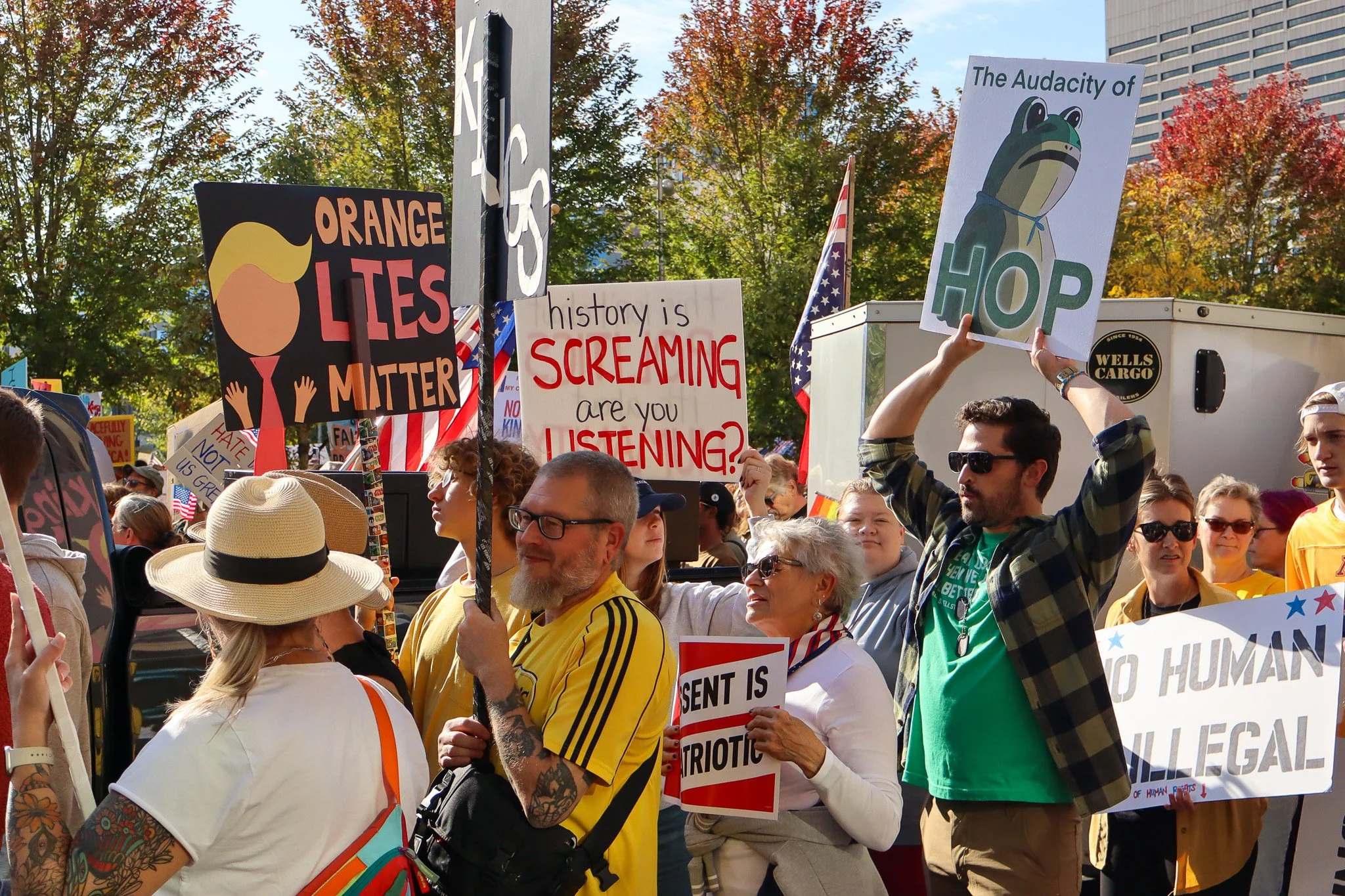Somewhere around 100,000 of us showed up at the October 18th, 2025 NO KINGS rally in Minneapolis, MN. The vibe I felt was chill, serious, and determined, with a healthy dollop of intentional ridiculousness in the form of folks in inflatable costumes and those with clever signage. I felt relief to see so many others who value democracy, due process, civil rights, and recognize our government’s corruption by the billionaire class. When one stays on top of current events, day by day, week by week, the corruption and destruction of our democracy is gobsmacking (see professor and historian, Heather Cox Richardson, for weekly recaps). It felt good to take action to say, ‘we see you, and we don’t support what’s being done with our tax dollars.’
